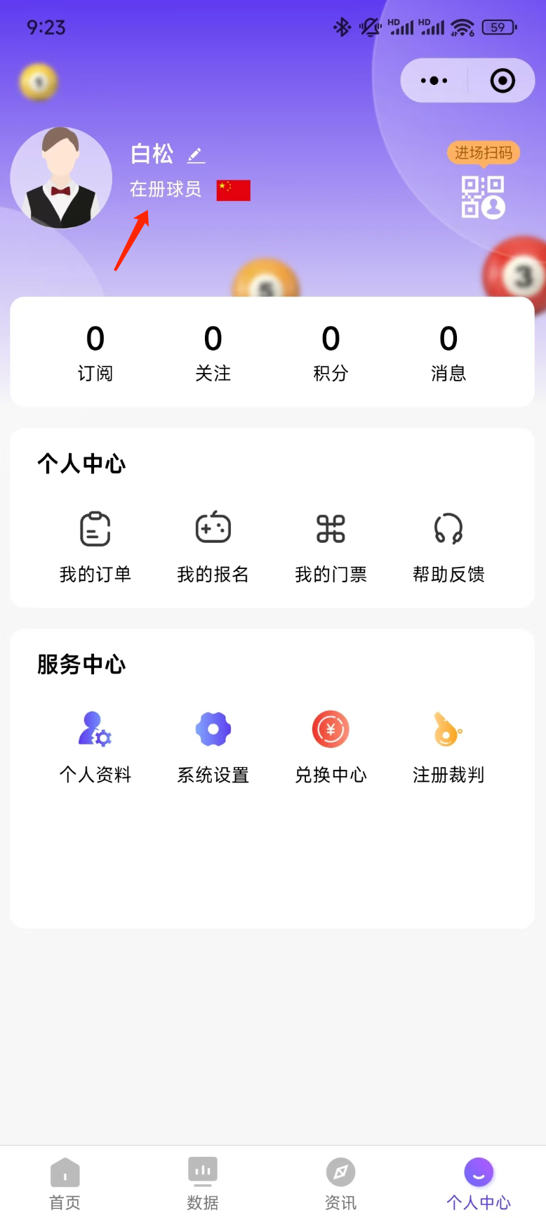(2)进入个人中心,“注册球员”开始注册个人信息,等后台通过审核开始报名。(英文名字汉字全拼大写,上传照片要白底证件照或职业照)